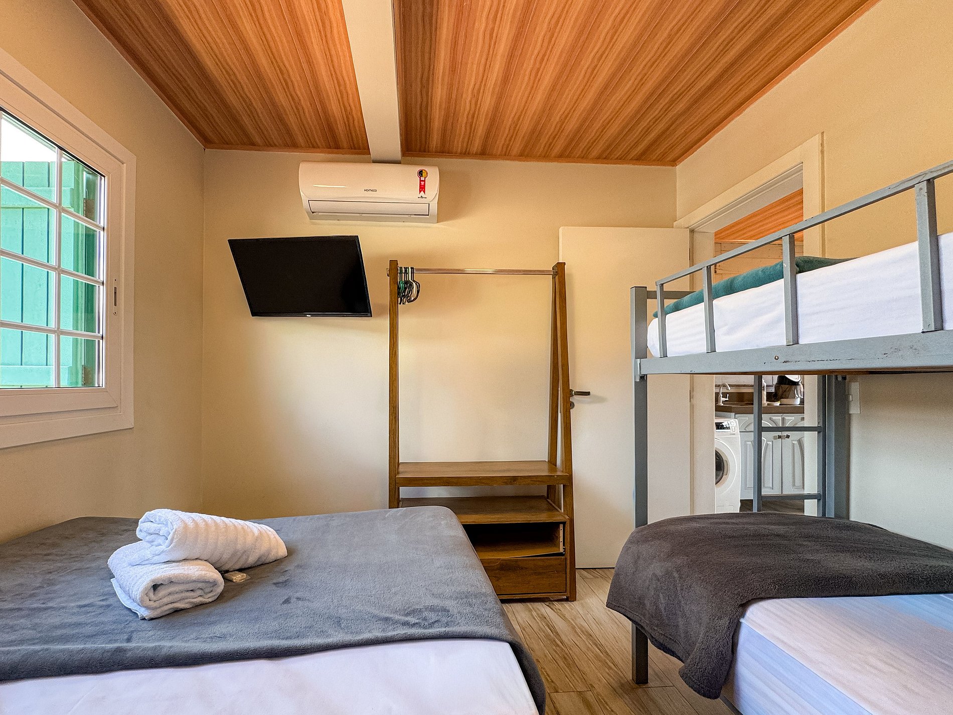 Bem-vindo ao Apto 202 – Centro de Gramado! Este apartamento é ideal para quem busca conforto, excelente localização e padrão superior de hospedagem. Acomoda até 8 hóspedes, em prédio novo com arquitetura inspirada na Serra Gaúcha, combinando charme, modernidade e praticidade. O apartamento oferece: • Três quartos com Smart TV 32” e ar-condicionado quente/frio inverter • Sala de estar ampla e confortável • Cozinha completa equipada com geladeira com freezer, fogão de indução (cooktop), micro-ondas, chaleira elétrica, sanduicheira, liquidificador e utensílios completos (pratos, copos, canecas, panelas e talheres) • Internet Wi-Fi de boa qualidade Localização: Estamos localizados no Centro de Gramado, a menos de 5 minutos a pé da Rua Coberta e da Avenida Borges de Medeiros. A apenas: • 2 minutos a pé do Vita Boulevard • 3 minutos a pé do McDonald’s • Próximo a supermercados, cafés, restaurantes e lancherias Tudo pode ser feito a pé. Informações importantes: • Não é permitido fumar no imóvel • Não aceitamos animais de estimação (pets) • Respeitar horário de silêncio conforme normas do prédio Estacionamento: O prédio não possui garagem fixa. Há 4 vagas rotativas em frente ao prédio, sem preferência, utilizadas por ordem de chegada. A rua é tranquila, segura e permite estacionar facilmente.
