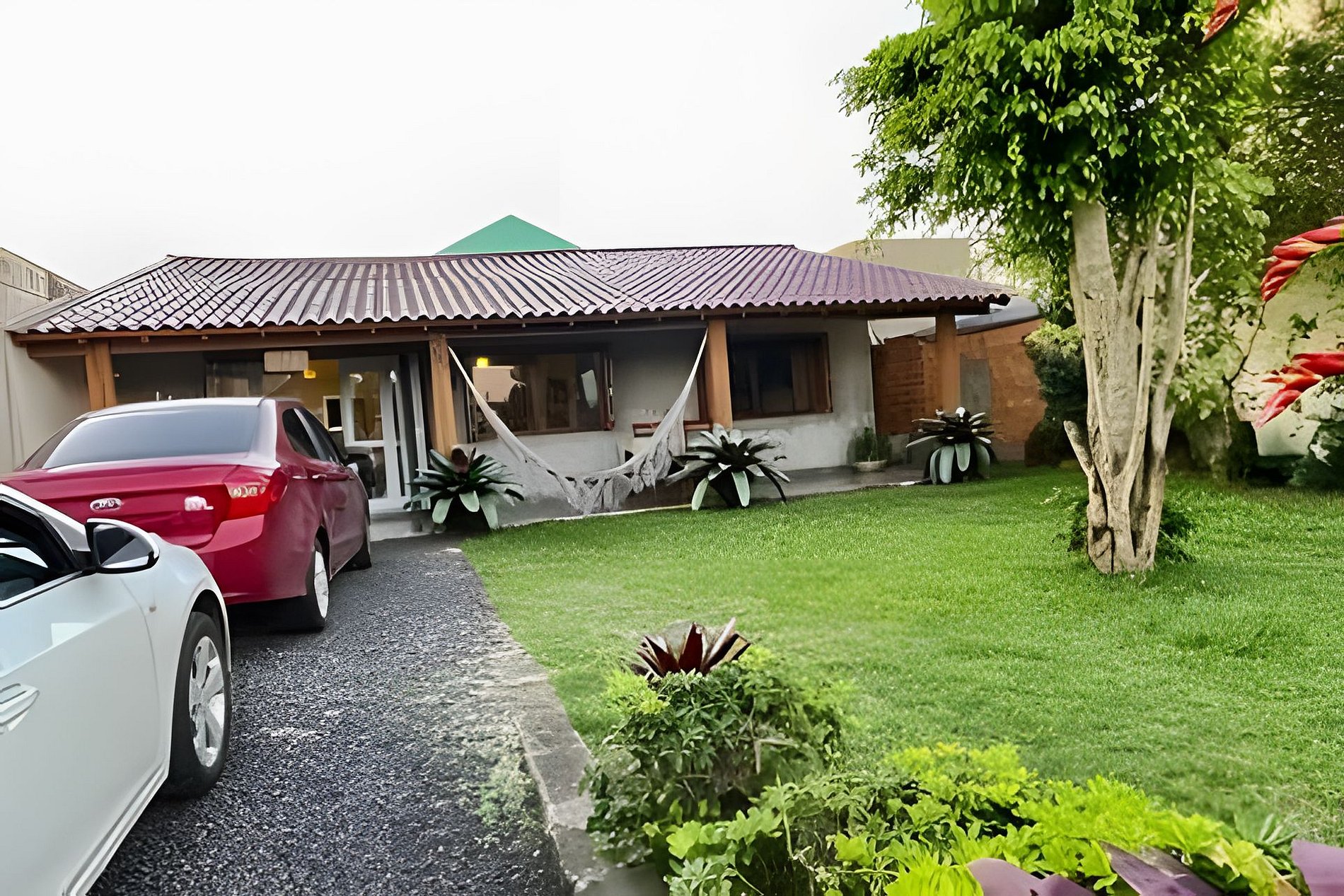 Para quem vem de carro, a casa conta com pátio fechado com vaga para até dois veículos, oferecendo mais comodidade e segurança durante a estadia.