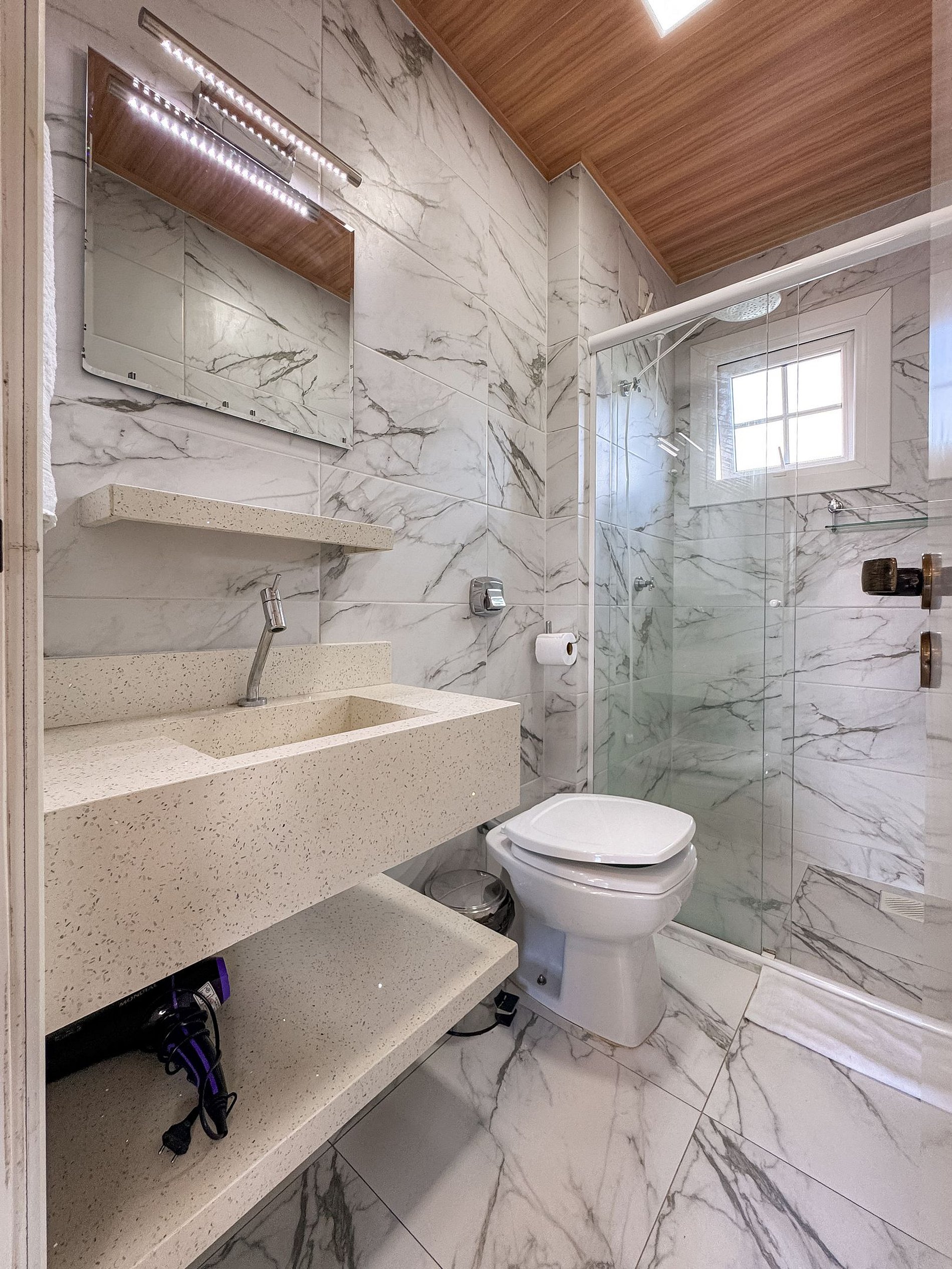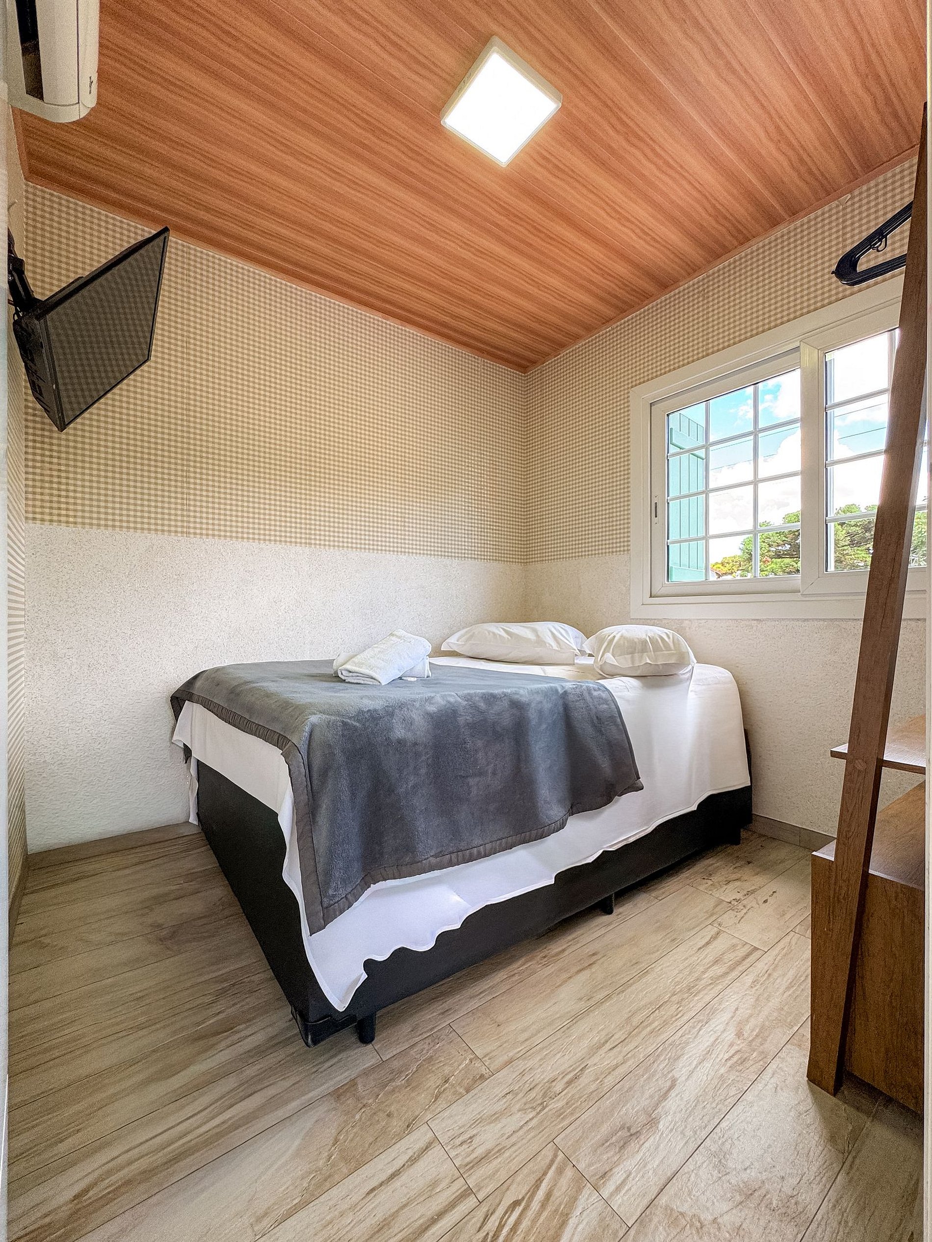 Os ambientes são bem distribuídos, com ótima iluminação natural e climatização em todos os quartos. A sala é perfeita para momentos de descanso e convivência, enquanto a cozinha completa garante total autonomia durante a estadia.